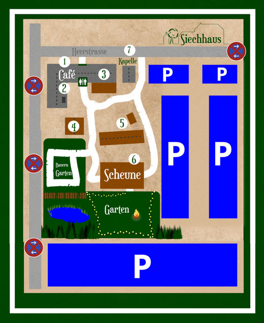 Das Abstellen von Fahrzeugen ist nur auf den hierfür gekennzeichneten Flächen für Besucher des Siechhaus gestattet. Auf der B265 und in den Feldwegen ( Richtung Oberelvenich/Rövenich) herrscht absolutes Halteverbot.
